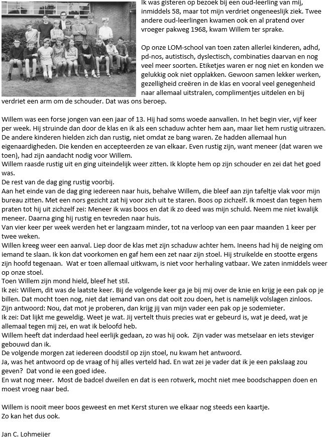 Willem Datum: 05 december 2014 Aflevering 4, 3 december 2014. Een Bussums verhaal, wat zich precies zo had kunnen afspelen in Lutjegast.