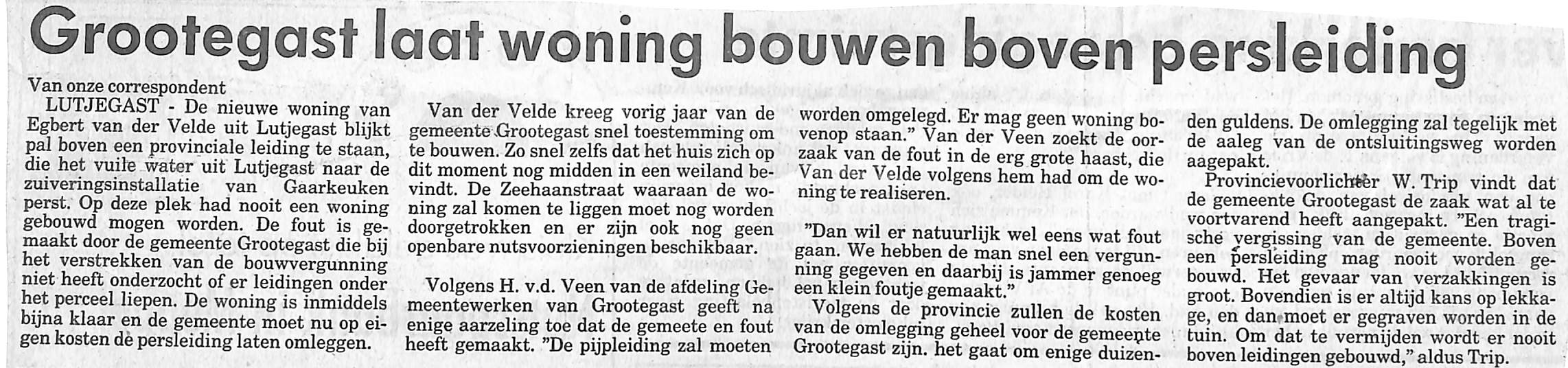 Huis van Egbert van der Veel staat boven op persleiding van vuil water van Lutjegast.