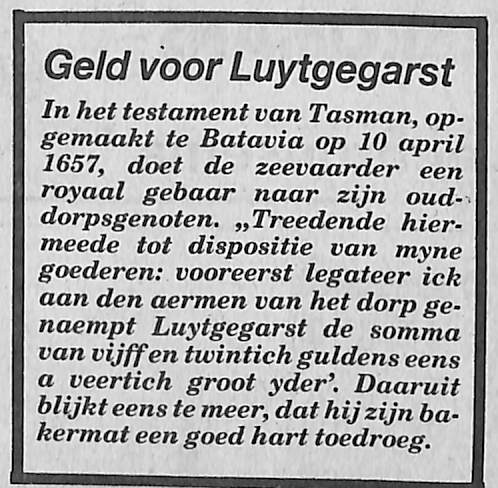 Alle armen van het dorp luytgegarst = Lutjegast ontvangen ieder vijfentwintig gulden.