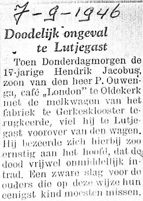 volgt op knipsel 7-9-1946 dodelijk ongeval (hoort niet bij Lutjegast)