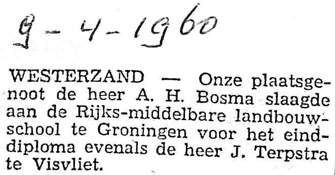 dhr. A.H. Bosma, Westerzand en dhr. J. Terpstra te Visvliet