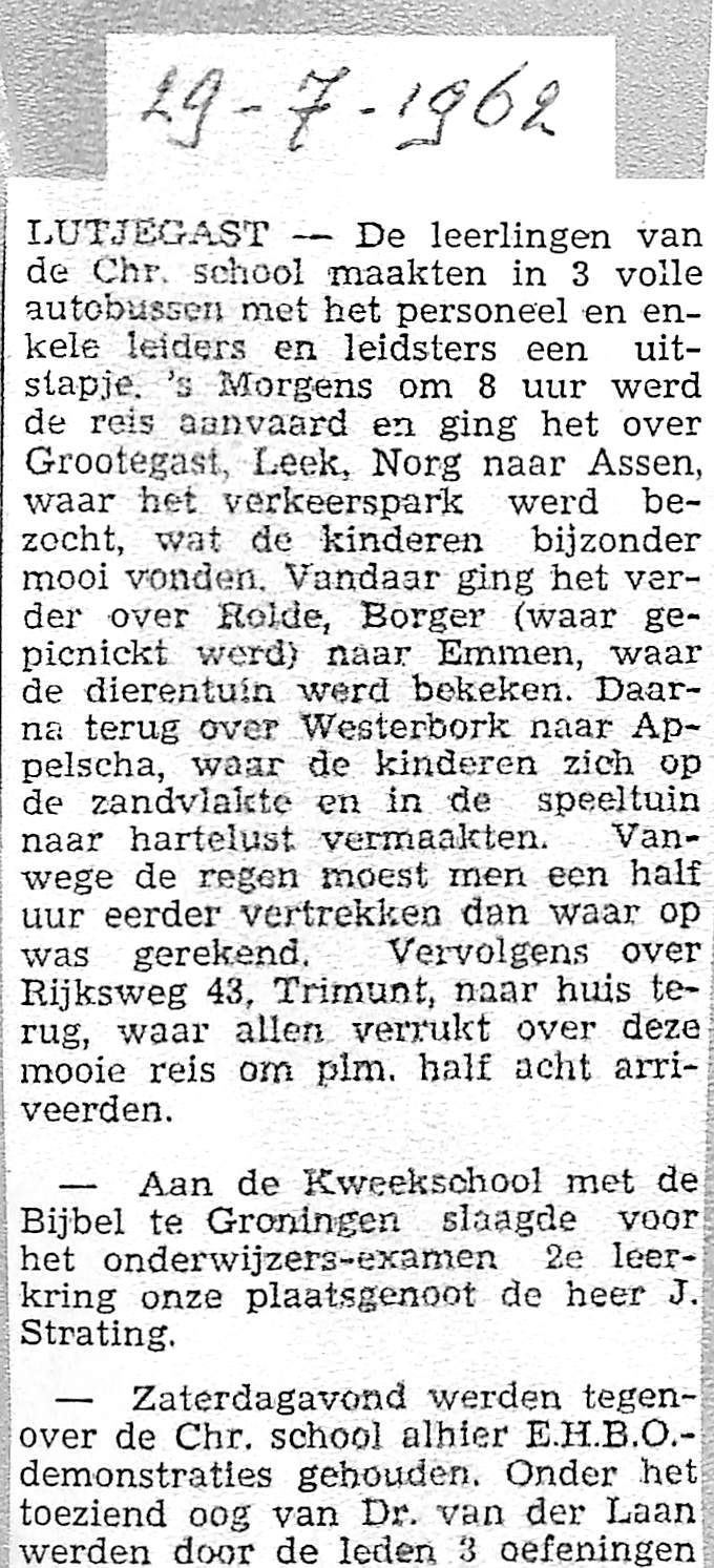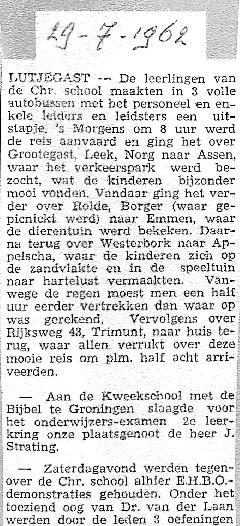 J. Strating slaagt voor onderwijzersexamen 2e leerkring aan de Kweekschool met de Bijbel te Groningen