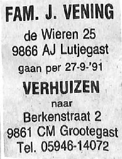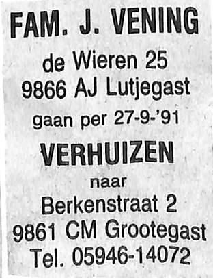 Fam J. Vening verhuist van De Wieren 25 naar Grootegast