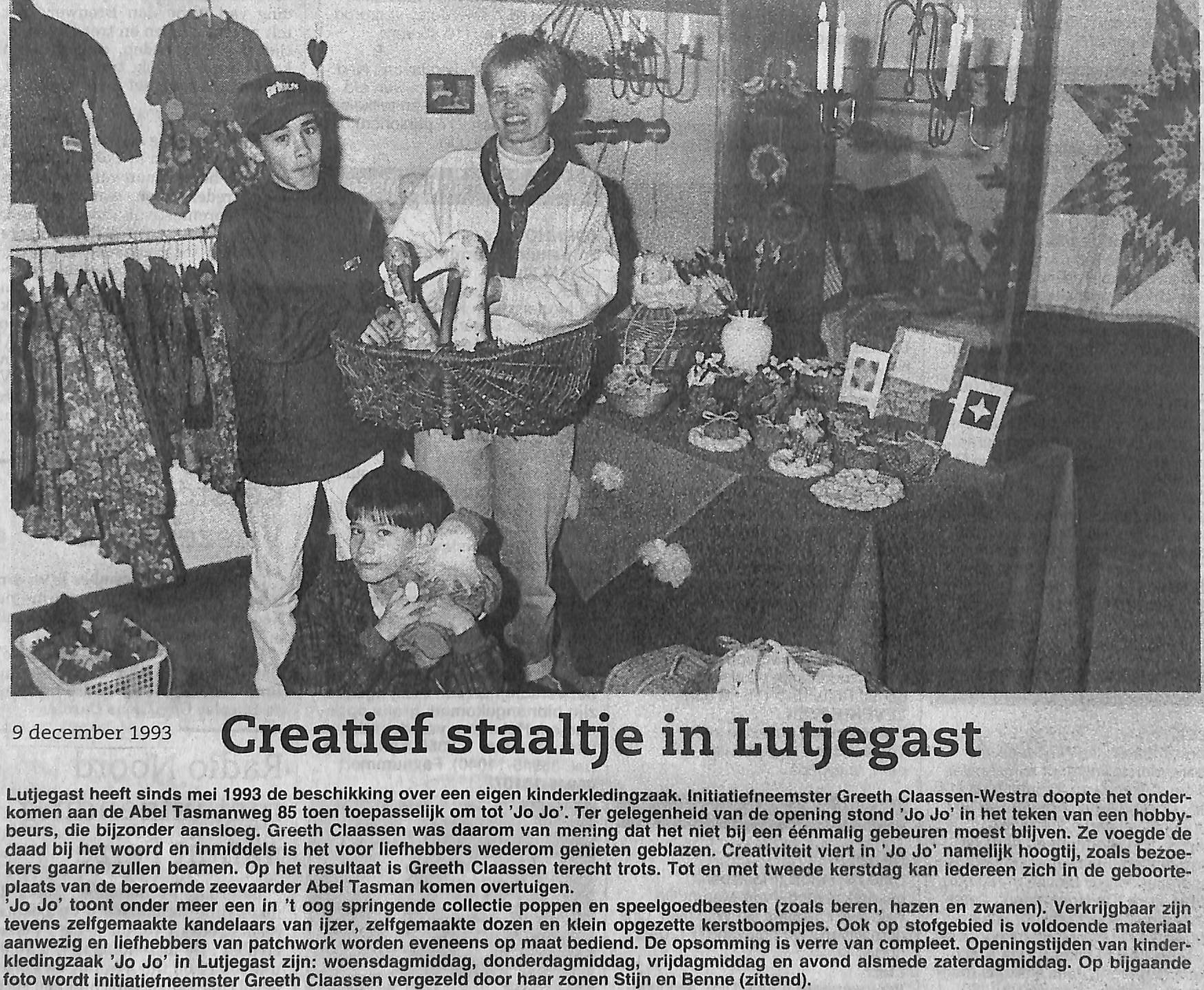 Greeth Claassen-Westra eigen kleidingwinkel Jo-jo en allerlei andere zaken. Stijn en Benne Claassen.