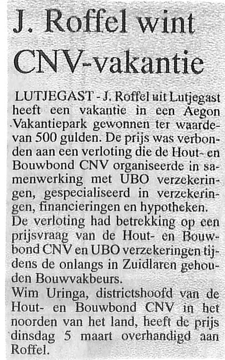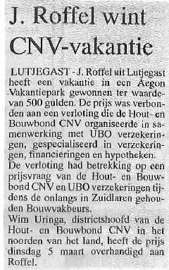J. Roffel heeft de CNV-vakantie gewonnen van Hout- en Bouwbond.
