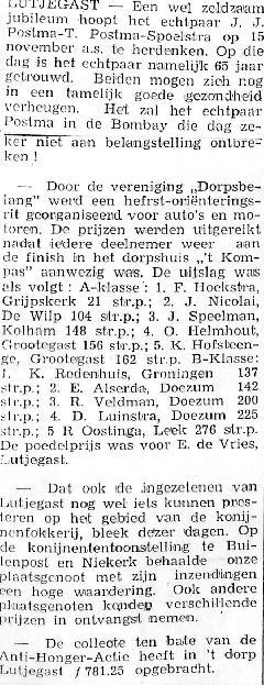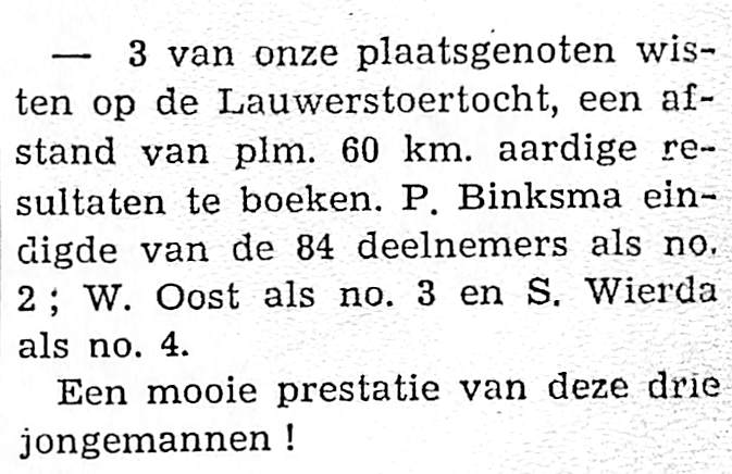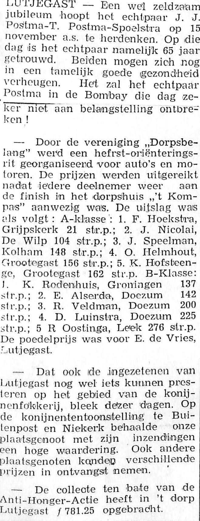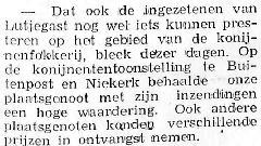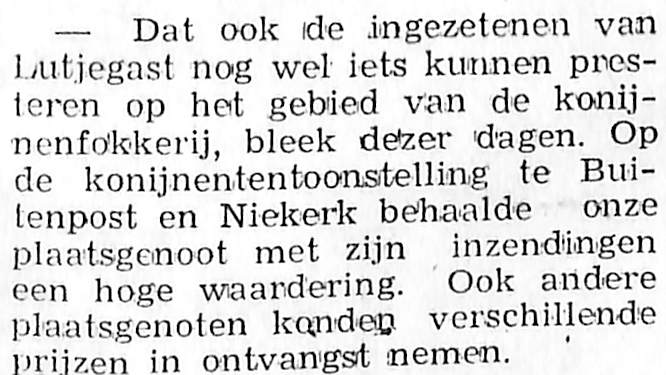 Een niet bij name genoemde plaatsgenoot won prijzen op een konijnententoonstelling te Buitenpost en Niekerk