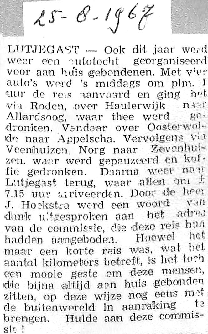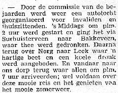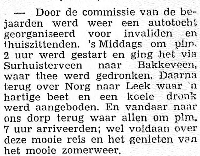 commissie van de bejaarden organiseert autotocht. Route Surhuisterveen, Bakkeveen, Norg, Leek