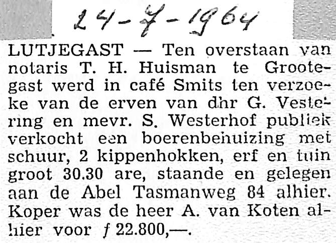 Verkopers: erven van dhr G. Vestering en mevr. S. Westerhof