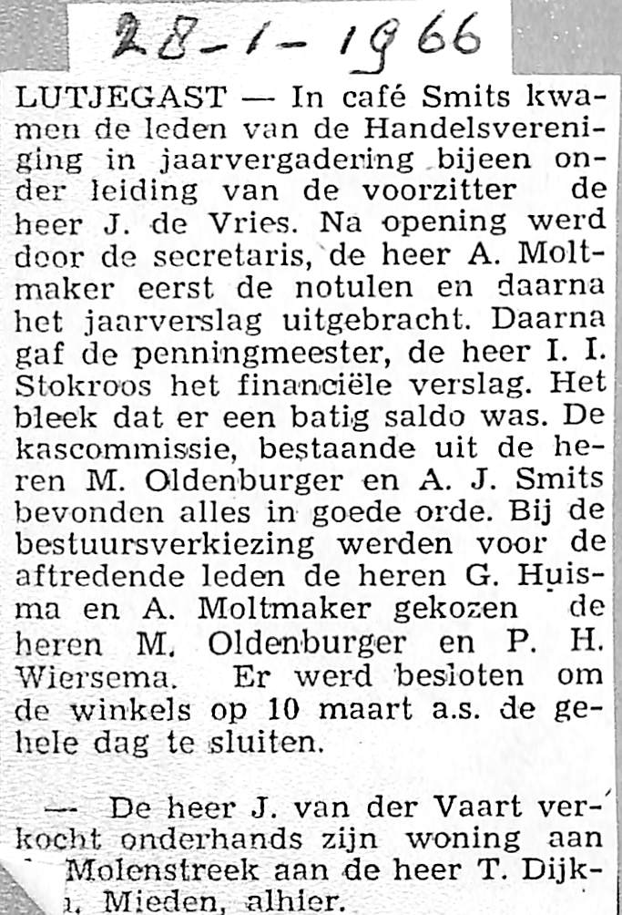 Handelsver. Lutjegast deelt mee dat zaken voortaan om 6 uur 's avonds zijn gesloten