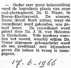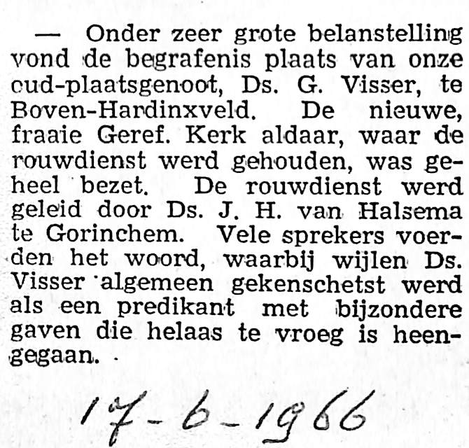 ds. G. Visser, Boven-Hardinxveld overleden