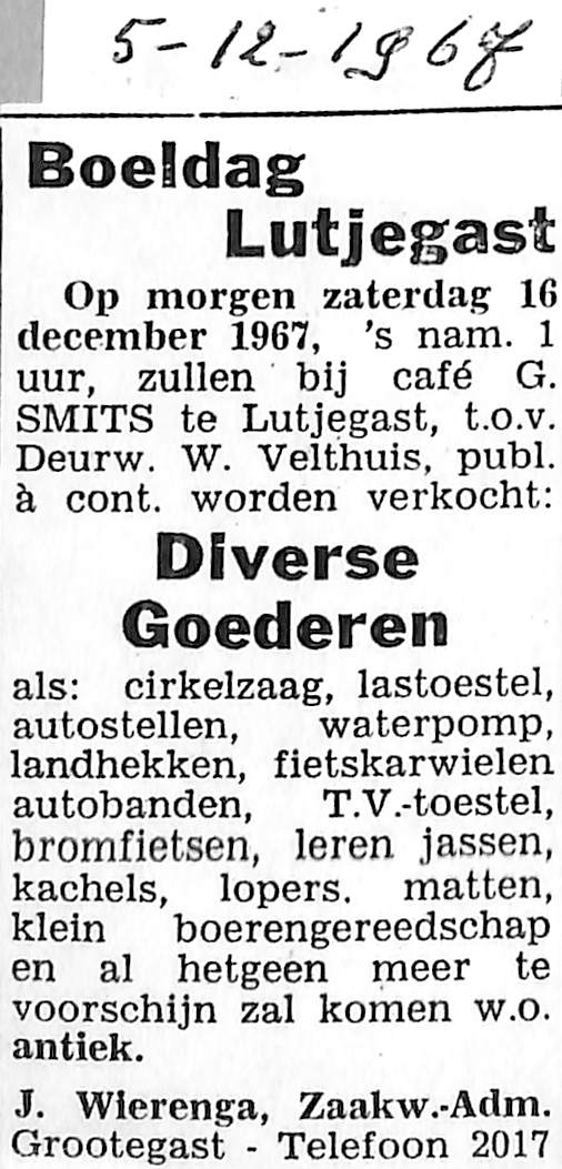 Zaakwaarnemer J. Wierenga, Grootegast kondigt boeldag aan.