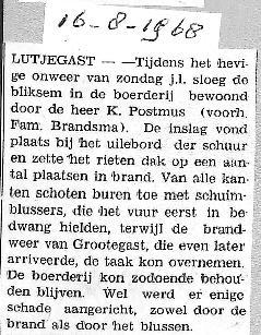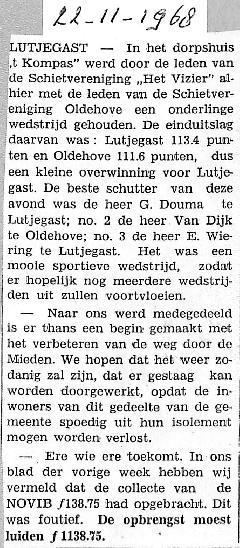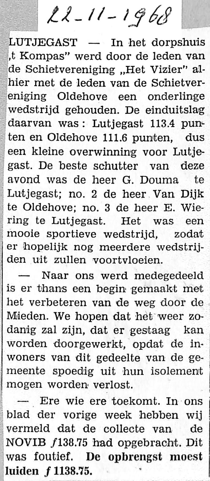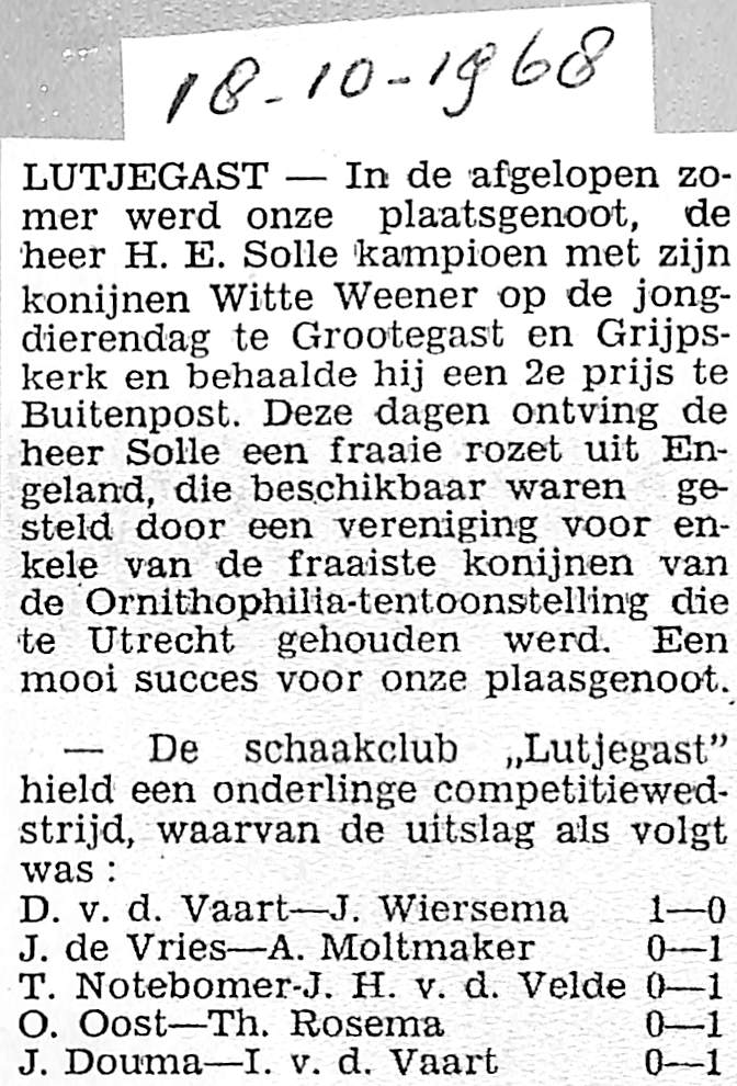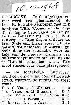 1e bericht: uitslag 1. G. Douma, Lutjegast, 2. Van Dijk, Oldehove, 3. E. Wiering, Lutjegast