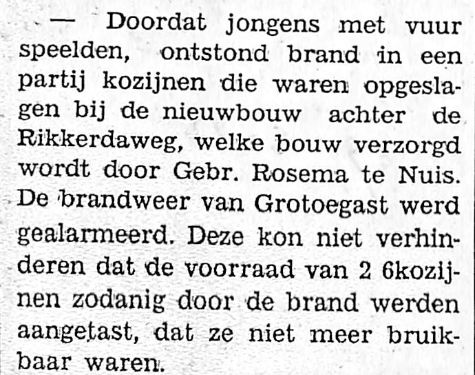 jongeren steken kozijnen in brand, bestemd voor nieuwbouw achter Rikkerdaweg