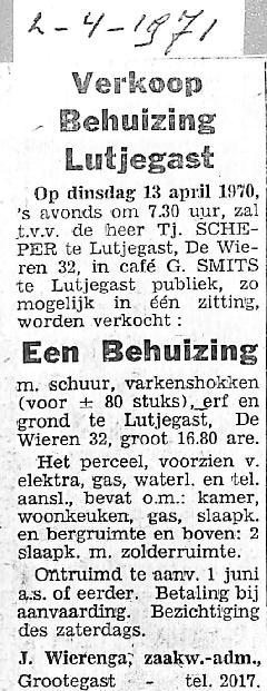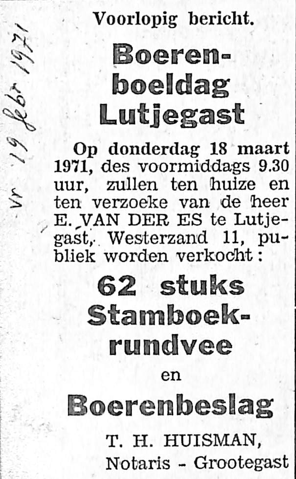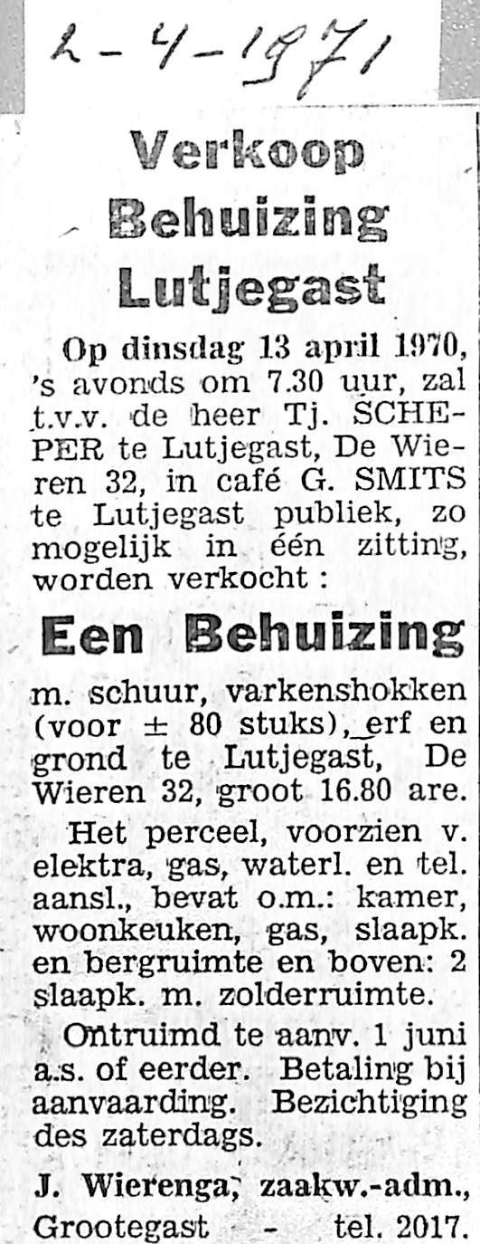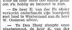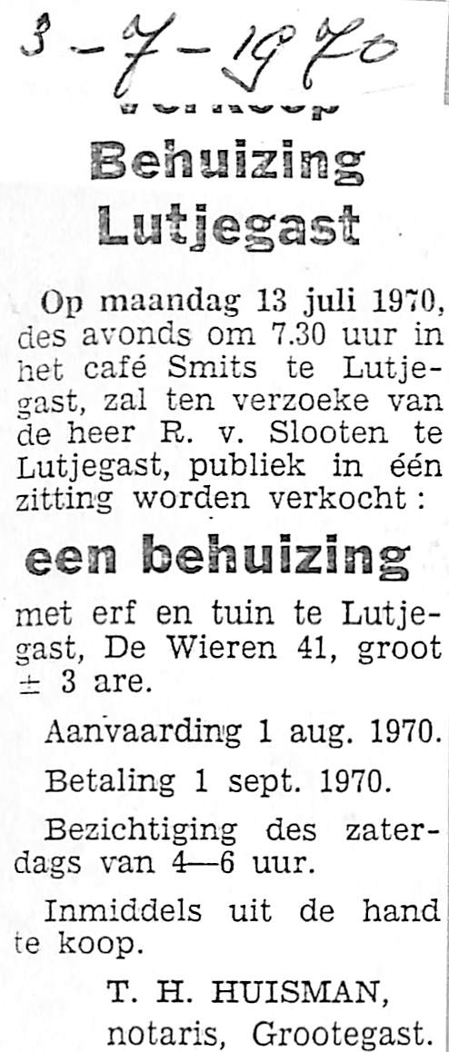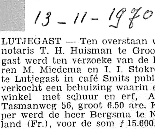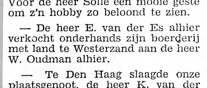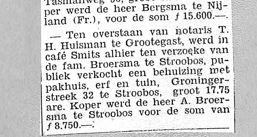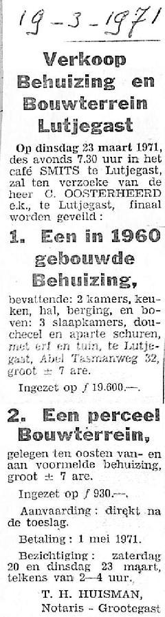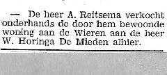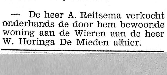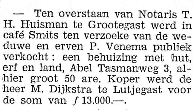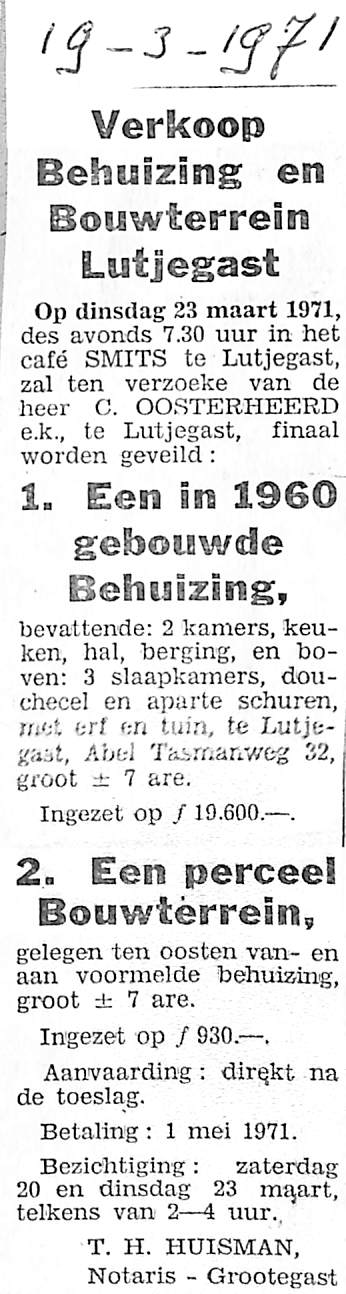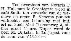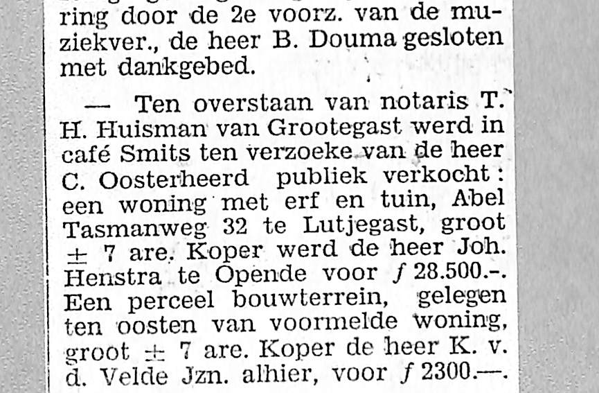 Verkoper dhr C. Oosterheerd, koper woning dhr Joh. Henstra, Opende