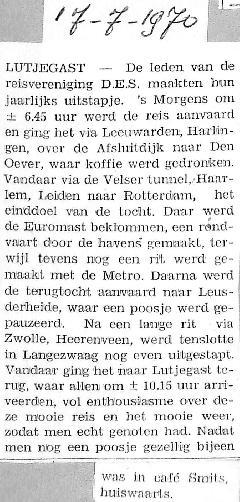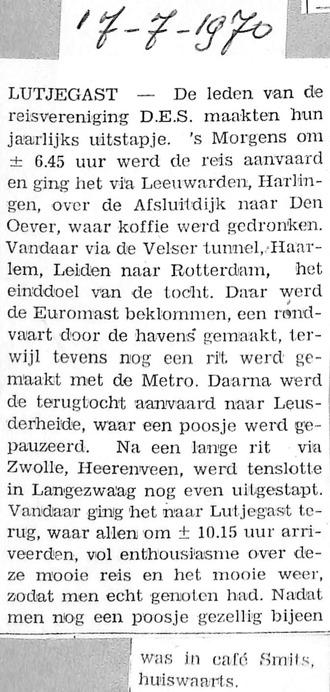 Reisver. D.E.S. bezoekt o.a. Euromast Rotterdam, rondvaart door haven, rit met de metro, nazit in café Smits