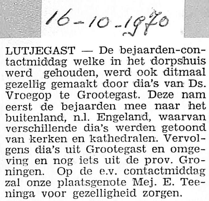 ds Vroegop, Grootegast toont dia's kerken en kathedralen Engeland, dia's Grootegast en omgeving