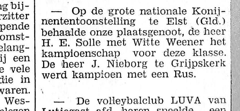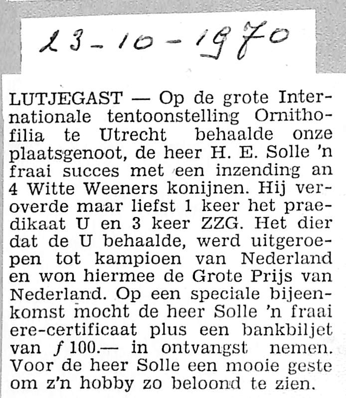Konijn wordt kampioen van Nederland; ere-certificaat en Fl. 100,00 gewonnen
