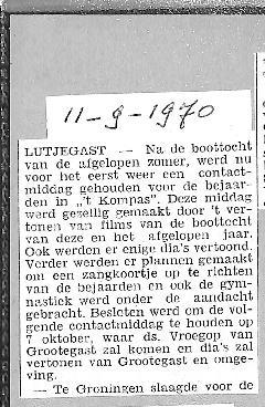 Films boottocht, dia's, plannen oprichting zangkoortje, aandacht voor bejaardengymnastiek