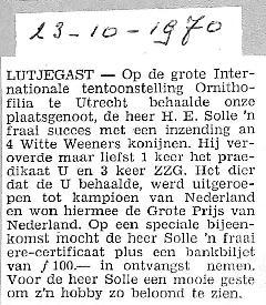 Konijnententoonstelling te Elst, konijn van Solle kampioen Witte Weener