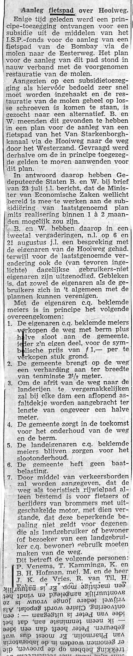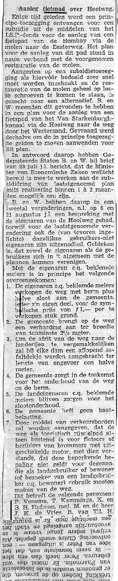 aanleg fietspad over de Hooiweg; P. Venenma, T. Kamminga, K. en B. H. Hofman, J.K. de Vries, R van Til