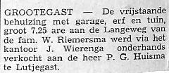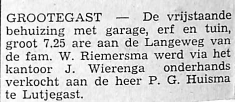 vrijstaand huis onderhands verkocht; W. Riemersma, J. Wierenga, P. G. Huisma