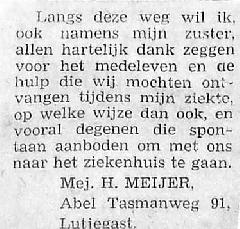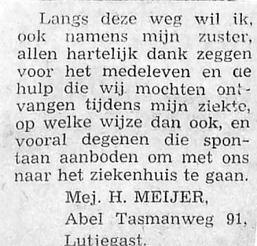 H. Meijer bedankte de hulp, bij brengen van haar zuster naar het ziekenhuis