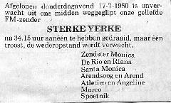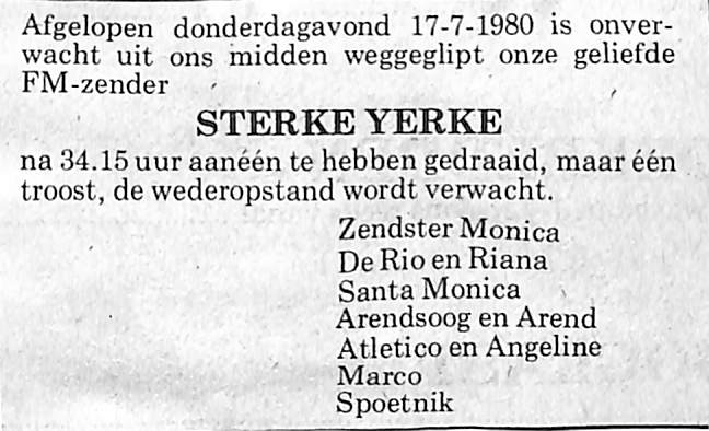 Sterke Yerke is van ons weggeglipt. We hopen op wederopstand.