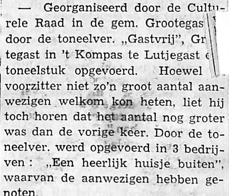 de toneelvereniging ,,Gastvrij" voerde in 't Kompas het toneelstuk ,,Een heerlijk huisje buiten" op