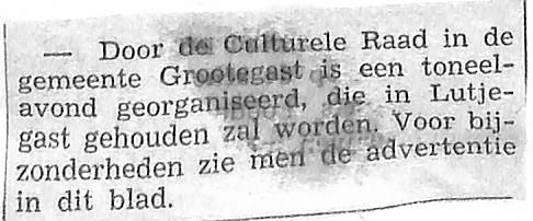 door de Culturele Raad in Grootegast is er een toneelavond georganiseerd