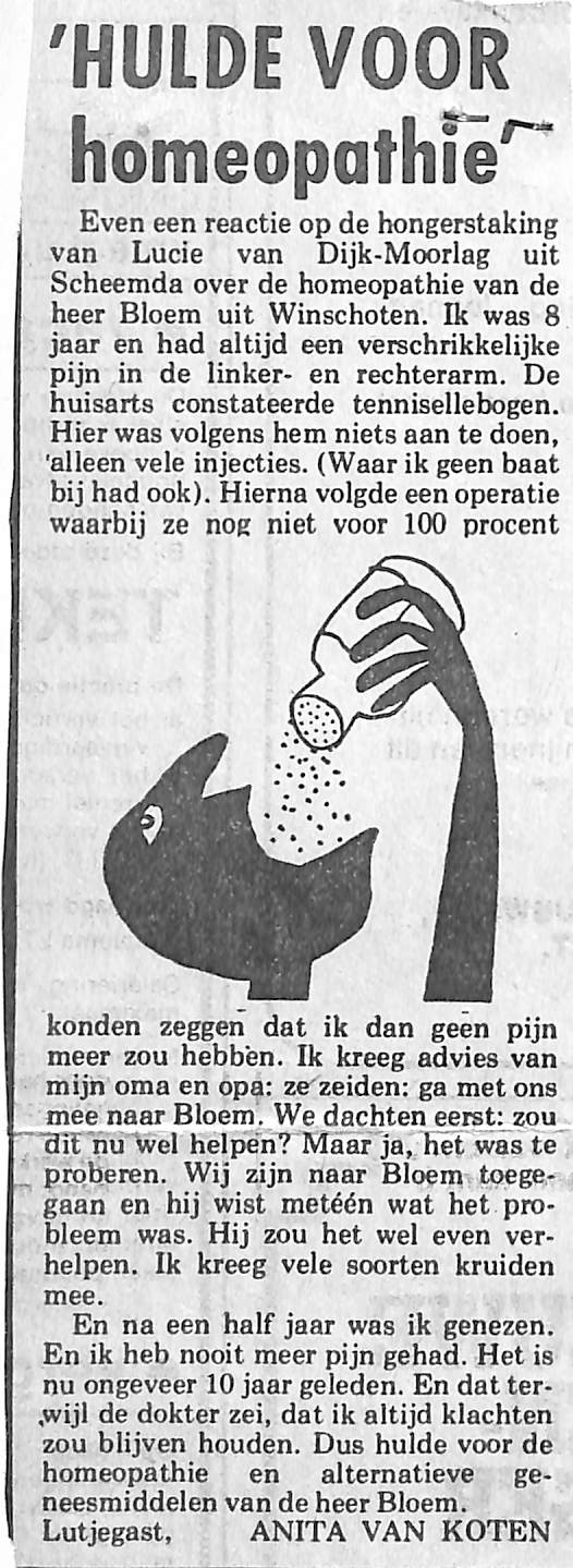 Anita van Koten werd genezen met homeopathische kruiden en geslaagd.