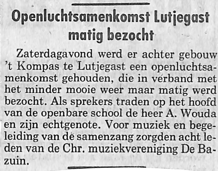 achter 't Kompas werd een openluchtsamen komst gehouden; A, Wouda, De Bazuin