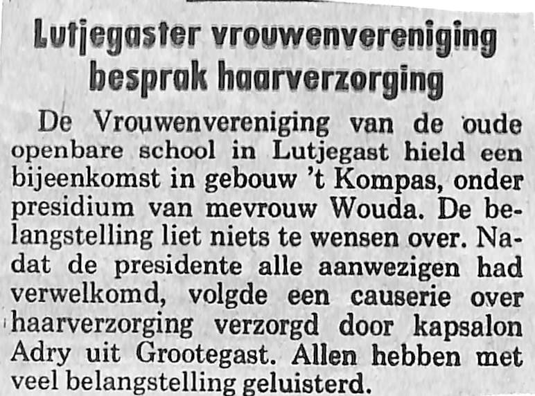 bijeenkomst in het Kompas en een causerie over haarverzorging