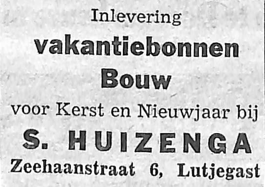 vakantiebonnen bij S . Huizinga Zeehaanstraat 6