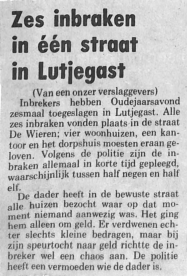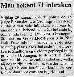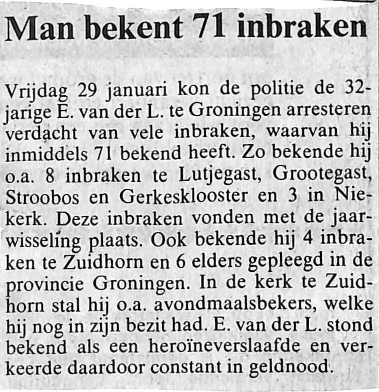 E. van der L. uit Groningen 71 inbraken waarvan 8 in lutjegast