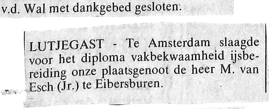 M. van Esch Jr. behaalde diploma ijsbereiding