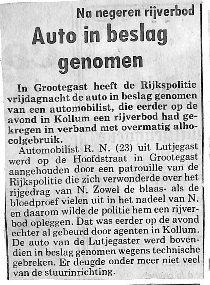 rijverbod en toch gaan rijden R. N. te Lutjegasr