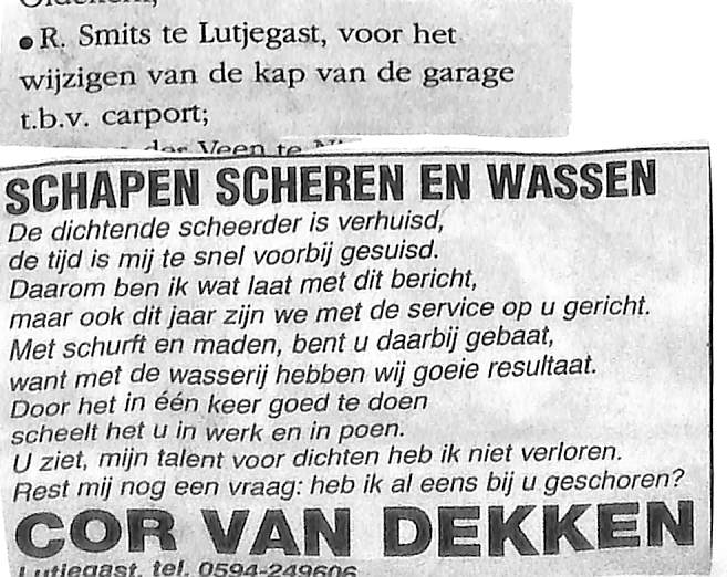 advertenties van Koudijs-Wouda; J. Veenstra, J. Klaver