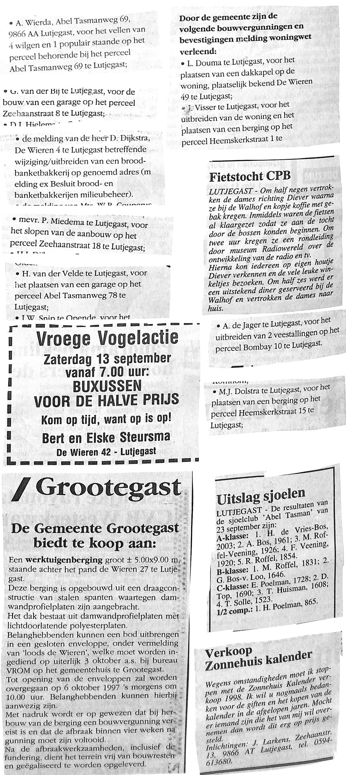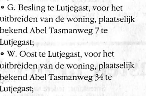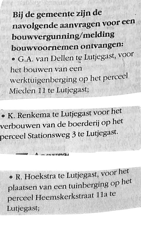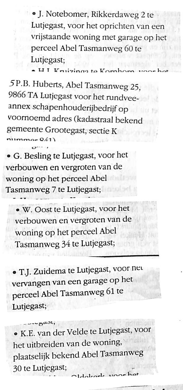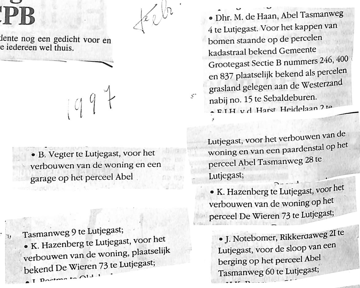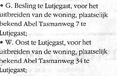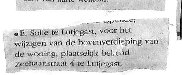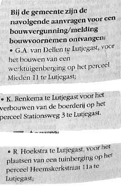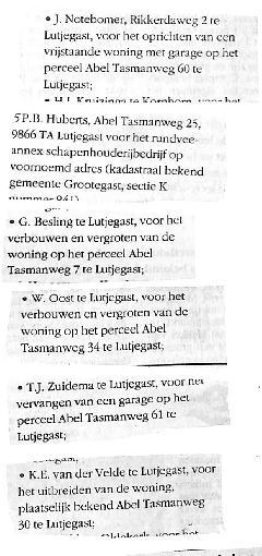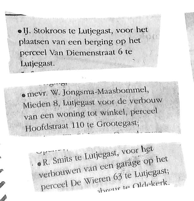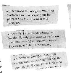 vergunningen; S. F. Douma, P. de With, J. D. van Dellen, H. J. Faber, v/d Velde, B. Reitsma, K. E. v/d Velde