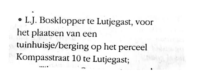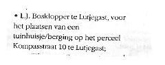 L.J. Bosklopper voor bouwen van tuinhuisje aan Kompasstraat 10
