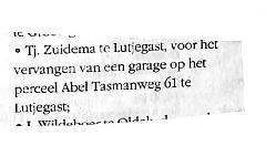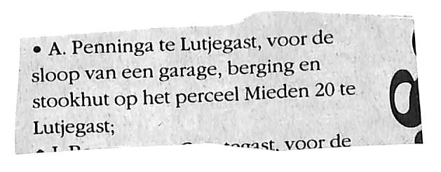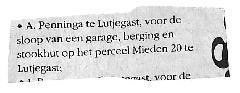 A. Penninga voor slopen garage, berging en stookhut Mieden 20