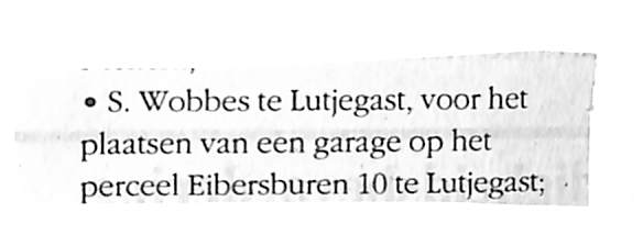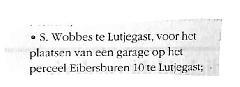 S. Wobbes, plaatsen van garage op Eibersburen 10