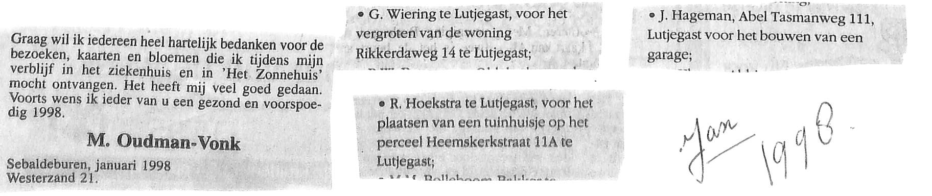 M. Oudman-Vonk bedankt voor al de belangstelling