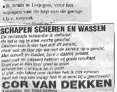 Uitslag sjoelwedstrijd: De Vries-Bos, Roffel-Veening, Bos- v.Loo, Poelman, Top, Huisman, Solle