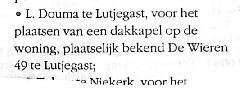 L. Douma voor plaatsen van dakkapel op De Wieren 49