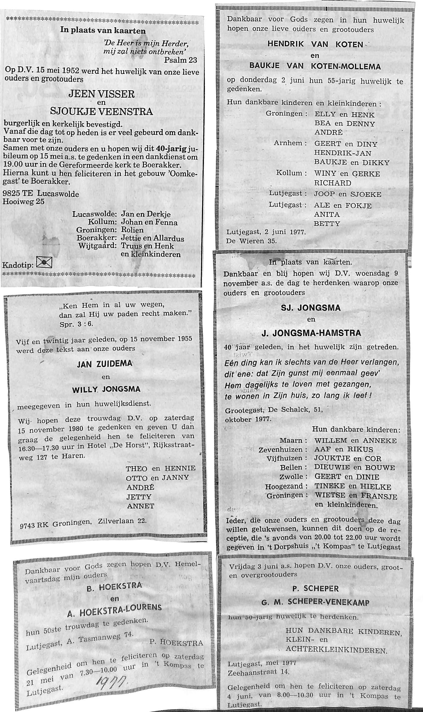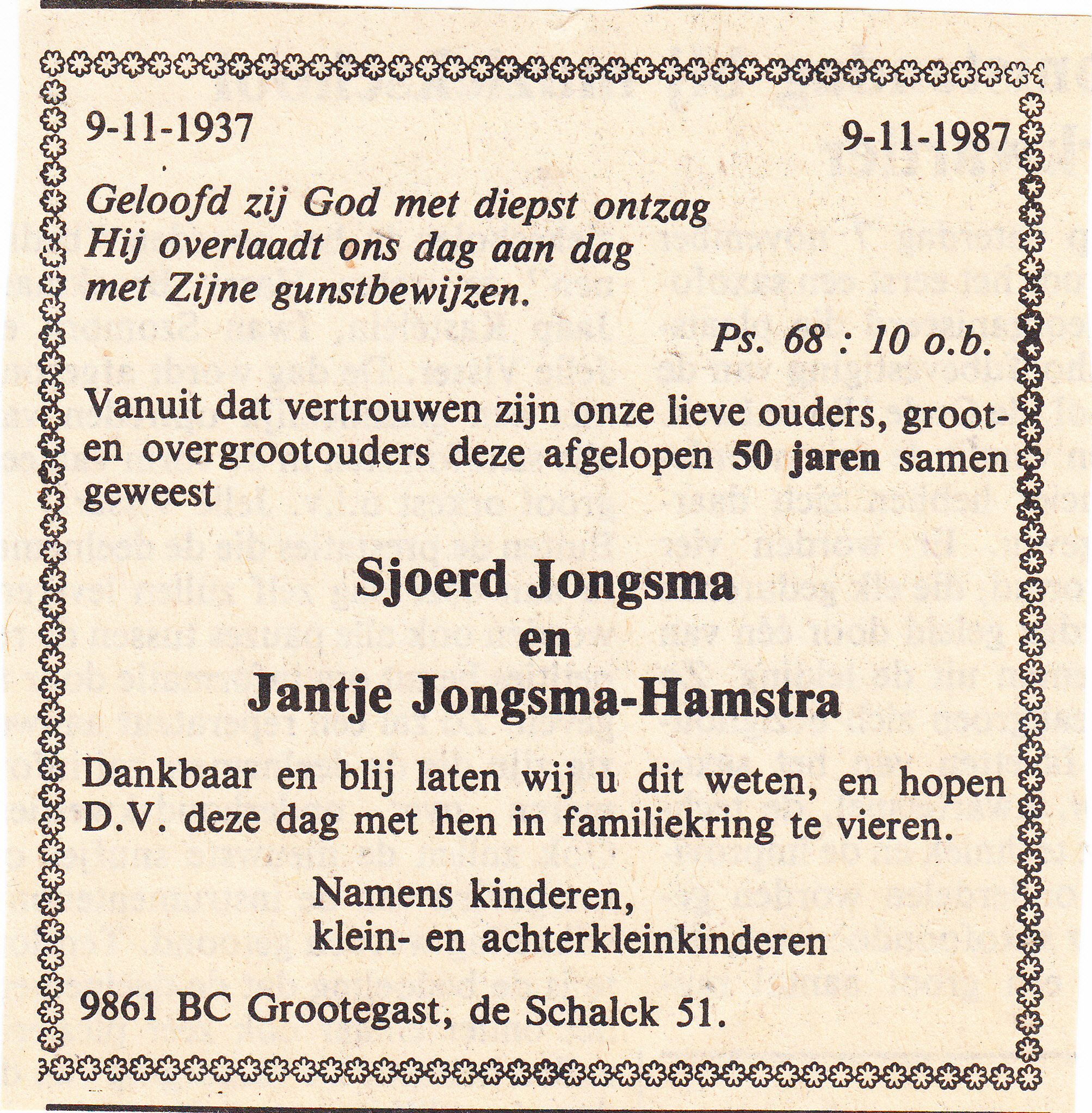 50 jaar huwelijk van Sjoerd Jongsma en Jantje Hamstra