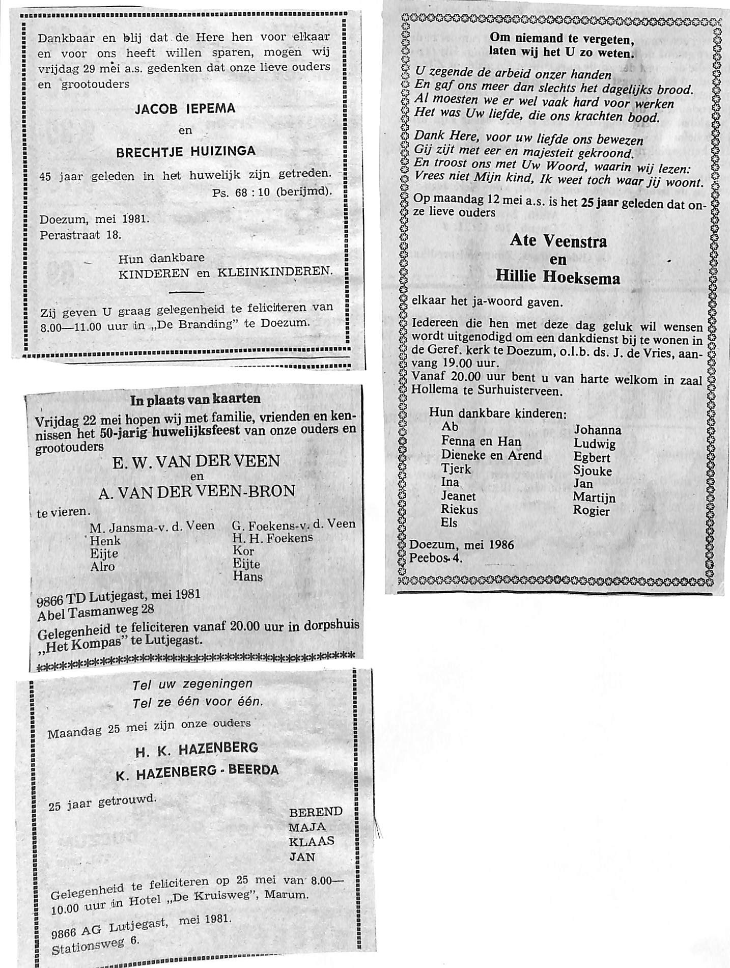 Ate Veenstra, Hillie Hoeksema, 25 jaar gehuwd
