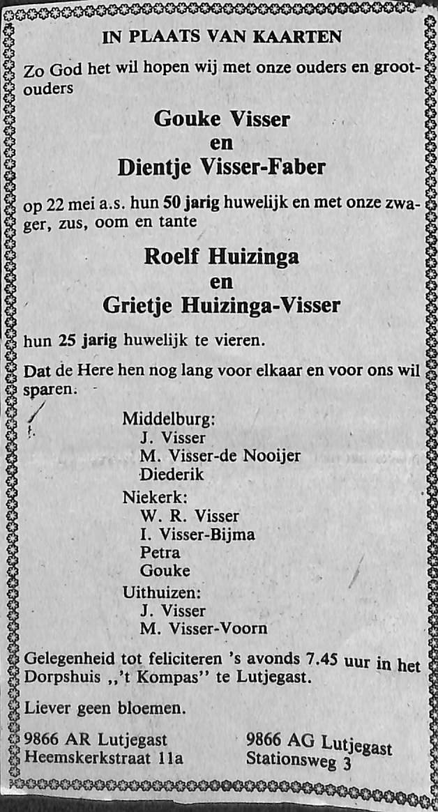 50 jaar getrouwd Gouke en Dientje Visser-Faber