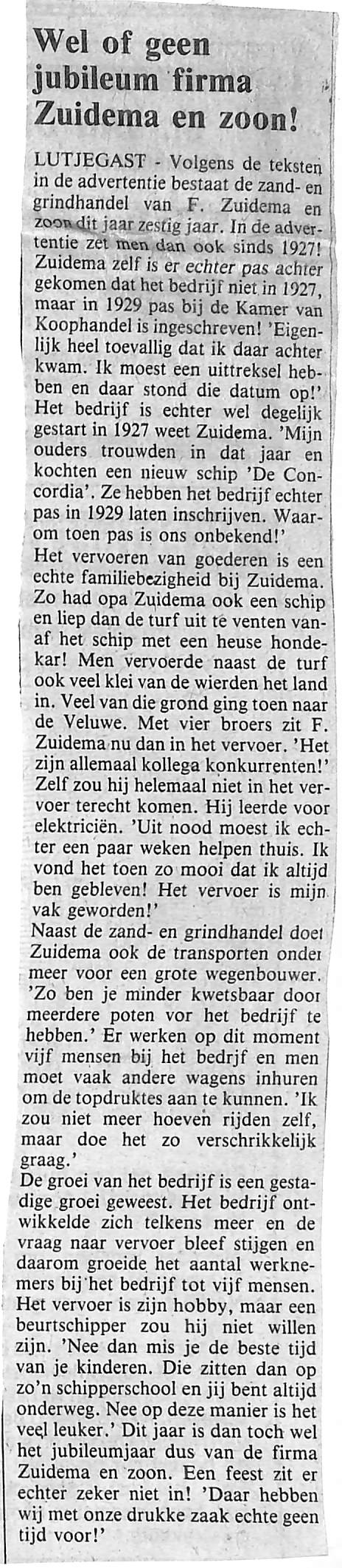 Is firma Zuidema nu 60 jaar oud of niet??