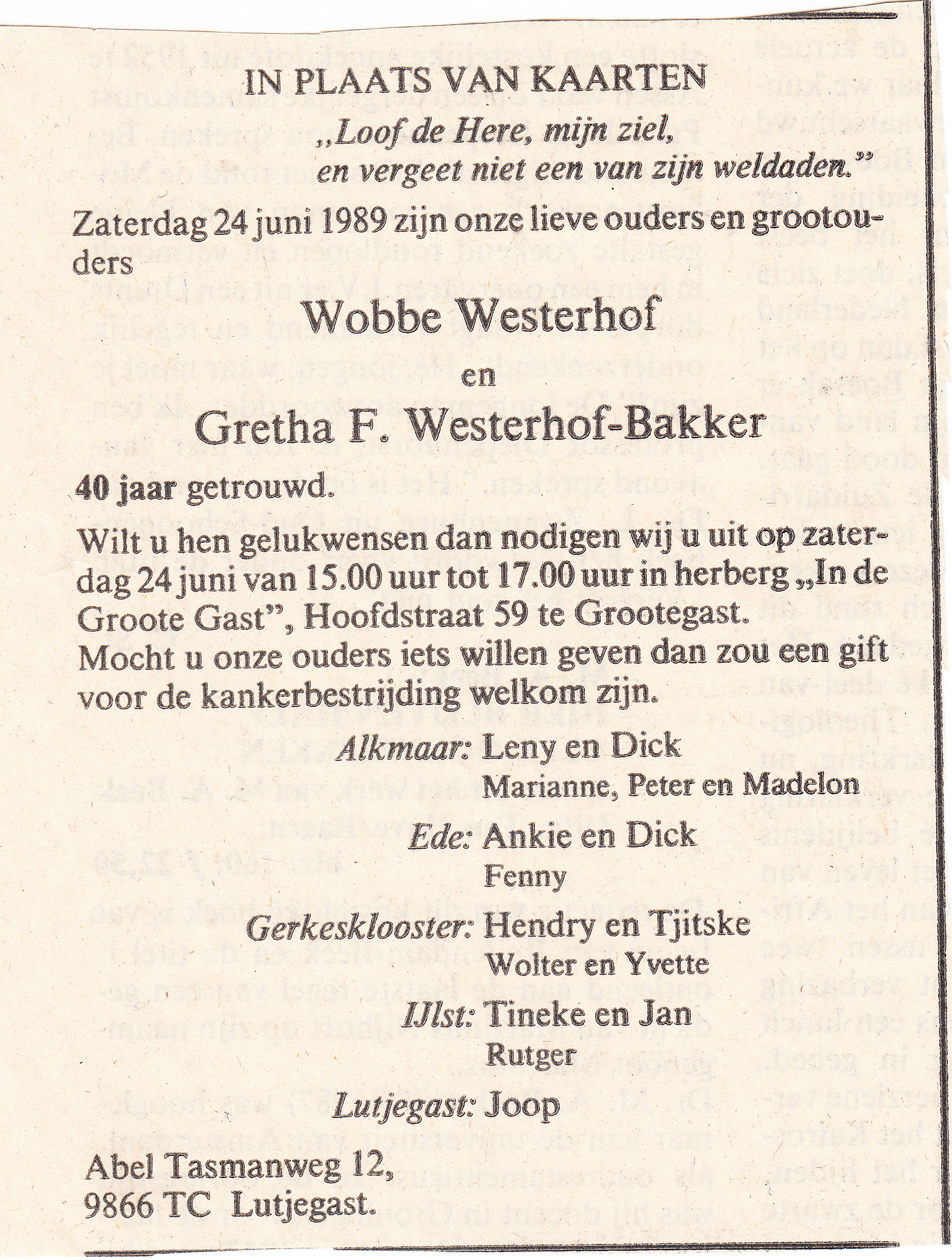 Wobbe Westerhof en Gretha F. Bakker,