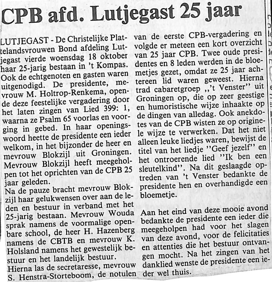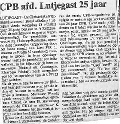25-jarig bestaan van de CPB; M. Holtrop-Renkema, Blokzijl, Wouda, H. Hazenberg, K. Holsland, S. Henstra-Storteboom